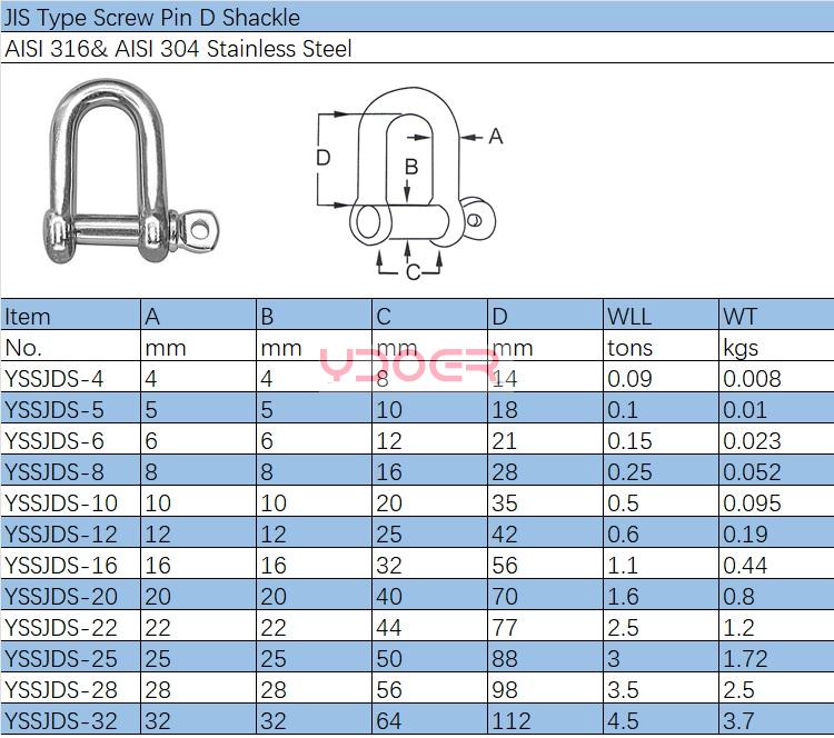 • SS 316 304 JIS Type Screw Pin D Shackle